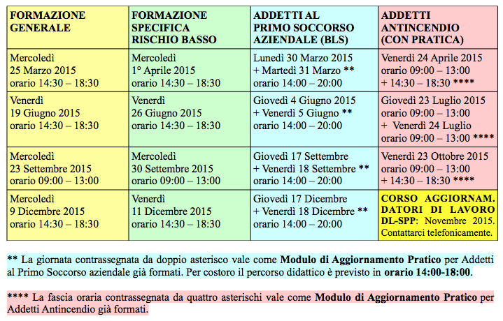 In questa occasione però segnaliamo i corsi in programma questo mese perché sono disponibili dei posti che potrebbero risultare utili a chi ha assunto o sta assumendo dei lavoratori privi di formazione obbligatoria in materia di sicurezza o, per il settore alimentare, del corso OSA.